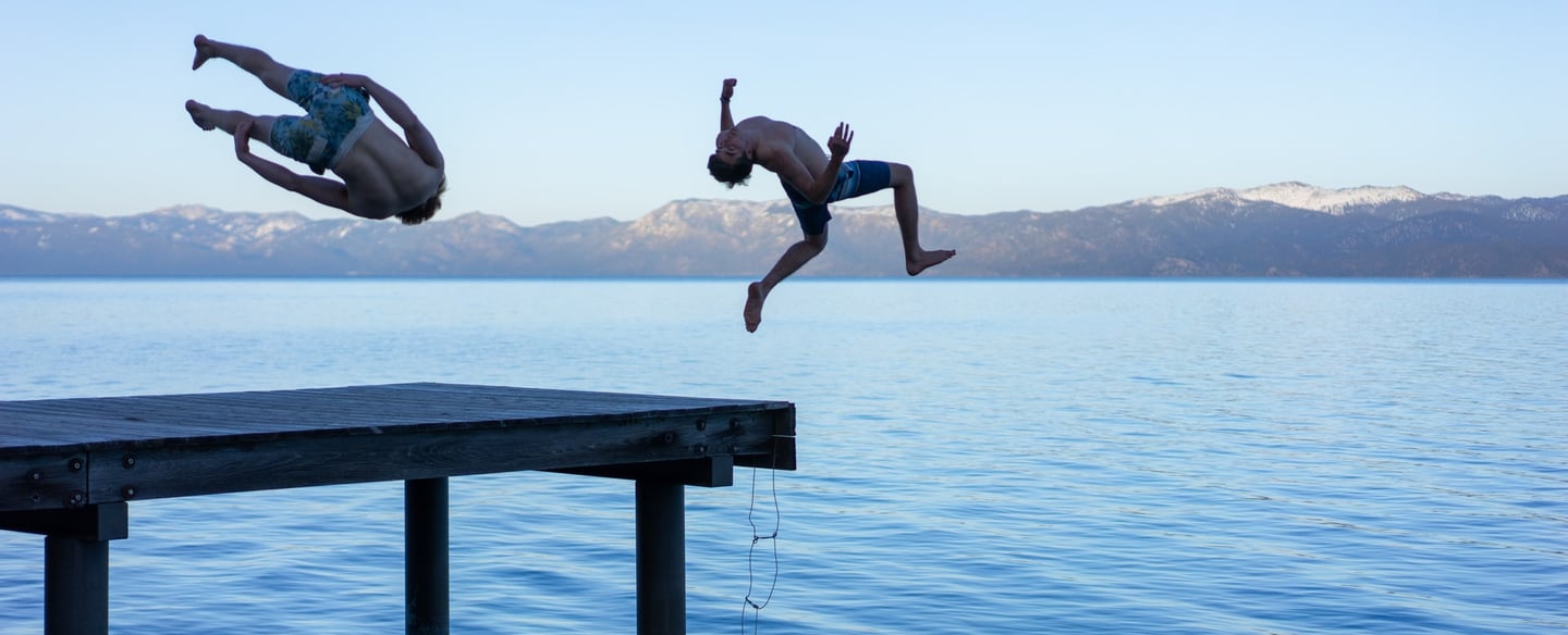 Legend has it that mobsters often chose Lake Tahoe as the final resting place of their foes. At a maximum depth of 1645 feet, and with a noticeably convex surface due to it's impressive scale, it sure does make for a good place to disappear. Luckily for us, we enjoyed hours of swimming, diving, and waterside activities alongside the shoreline - no encounters with mobsters or their victims. Our favorite spot along the route was Meeks Bay, where